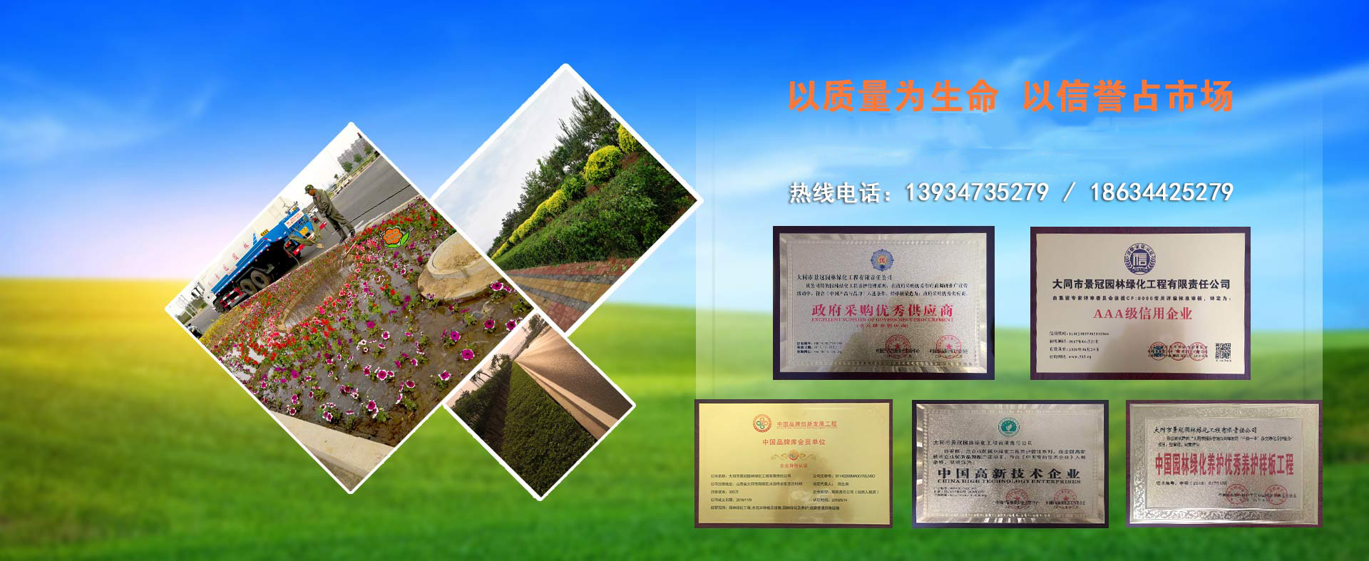 大同市景冠園林綠化工程有限責(zé)任公司是一家根植于設(shè)計、施工、植保養(yǎng)護(hù)、苗木花卉生產(chǎn)于一體的園林景觀企業(yè)。公司“以質(zhì)量為生命”、“以信譽(yù)求發(fā)展”這是公司一貫的經(jīng)營宗旨。并以創(chuàng)新,誠信,綠色,共享的發(fā)展理念,創(chuàng)造良好的企業(yè)環(huán)境。堅持愛綠,護(hù)綠,保綠的方針為城市增添一份綠色,用綠色擔(dān)當(dāng)生態(tài)建設(shè)使命是我們共同追求的價值和企業(yè)目標(biāo)。以全新的管理模式,完善的技術(shù),周到的服務(wù),卓越的品質(zhì)為生存根本。幾年來我們致力于園林景觀植物領(lǐng)域的研究,在城市綜合體景觀,校園園林景觀,道路景觀,生態(tài)農(nóng)業(yè)景觀,美麗鄉(xiāng)村景觀,濕地景觀等多個領(lǐng)域參與規(guī)劃設(shè)計施工。不斷加大科技投入力度,加強(qiáng)人才的儲備,網(wǎng)絡(luò)技術(shù)的培訓(xùn),提升自主創(chuàng)新能力,不斷完善企業(yè)文化,用超前的技術(shù)制定出一套完整的園林植保技術(shù)管理方案。我們堅持以擔(dān)當(dāng)為使命,用戶至上,服務(wù)至上,秉持初衷,不忘初心,實(shí)實(shí)在在,心無旁騖做好植保養(yǎng)護(hù)主業(yè),打造屬于自己的企業(yè)品牌,好好服務(wù)客戶,打動客戶。